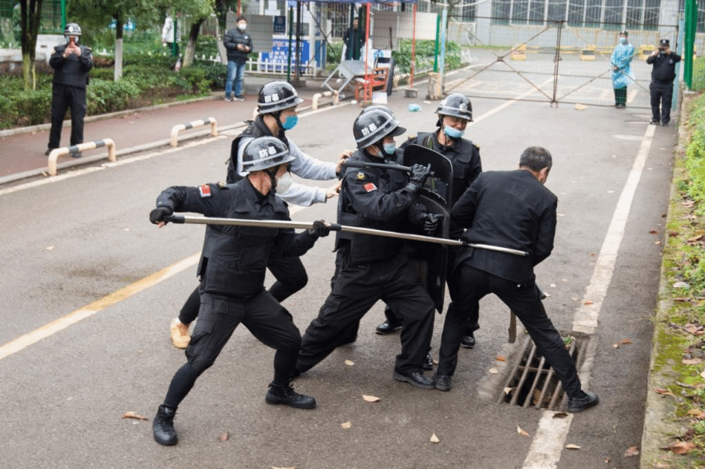 为增强校园反恐防暴应急处突能力,确保校园和谐稳定和师生生命安全,11月22日,保卫工作部联合金关派出所和保安公司组织开展反恐防暴演练。演练内容包括“歹徒”持械冲闯治安8号岗防控门,保安员对“歹徒”进行周旋并设法制服,以及派出所张警官对保安员进行反恐怖培训。通过演练和培训,进一步增强了保安员应对暴恐袭击的应急反应和处置能力,加强了与属地派出所联动的工作合力,提高了处置暴恐袭击的工作效率。