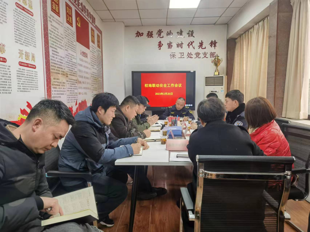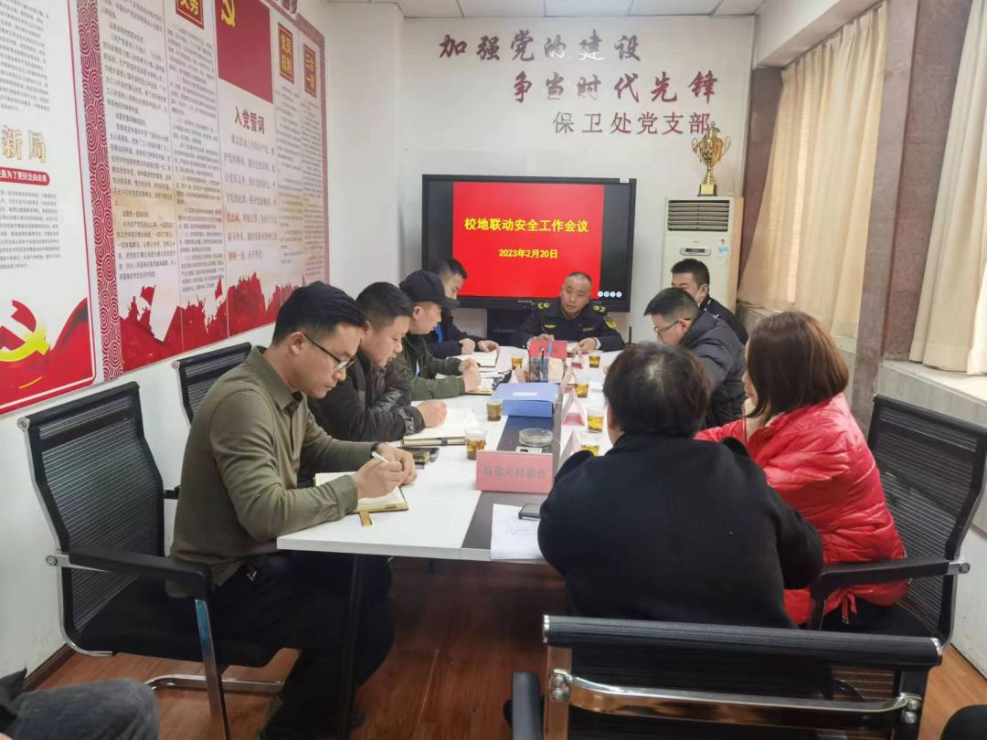 为加强和落实校地联动工作机制,2023年2月20日,春季学期校地联动安全工作会在蔡家关校区保卫处210会议室召开。校办公室、保卫处、金关街道办、金关派出所、市交警一大队、贵工大居委会、蔡家关村委会、辖区应急管理站、融创公司安保项目部等有关人员参会。