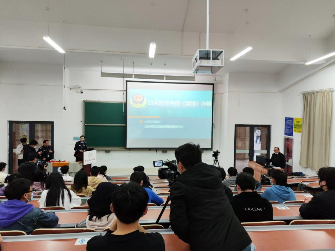 为进一步提高同学们防范电信网络诈骗意识,营造浓厚的校园反诈宣传氛围,4月19日晚,保卫处联合贵安新区公安局刑侦支队开展“反诈宣传进校园”线上线下讲座活动,王恩荣副支队长到校宣讲。通过本次宣讲,使同学们更加了解电信网络诈骗的发案特点,掌握防范要领,谨防参与电信网络诈骗,做到防范电信网络诈骗宣讲入耳、入 脑、入心,共筑校园反诈防骗的“防火墙”。