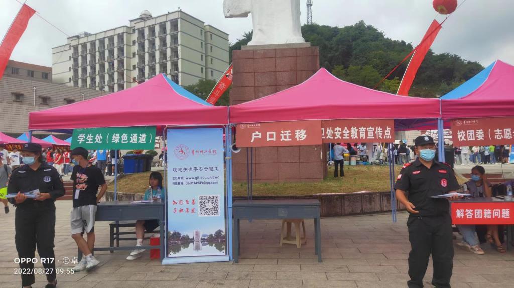 8月24日、8月27日,两校区迎来了2500余名2022级新生,为确保两校区新生安全顺利入校,保卫处制定详细的交通安保工作方案,并召开安保人员迎新工作部署会,提前报备与属地派出所、交警部门沟通,强化联动。因学校疫情防控要求,家长无法进校,面对新生行李过多问题,保卫工作人员主动帮助学生搬运行李,疏导送生车辆即停即走,做好迎新区域秩序维护,引导协助新生前往报到点,发放安全教育资料,开展校区巡逻,高质量完成了此次迎新工作。