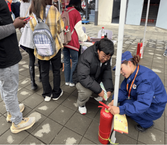 今年11月9日是第34个全国消防日,活动主题为“全民消防、生命至上——安全用火用电”。11月7日,学校在一期、三期食堂前广场开展消防安全知识集中宣传。现场讲解人员凭借扎实的专业知识,细致入微地讲解各类消防装备的功能与使用场景。师生们热情高涨,纷纷围拢观察并积极提问。消防知识趣味问答与“消防员”拍照体验相结合,寓教于乐,让师生在热烈氛围中沉浸式学习消防知识、感悟职业责任。