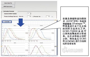 使用GC-MS/MS 对新化合物进行MRM 模式分析时,我们首先要确定其最优MRM 通道(前体离子/ 产物离子)和碰撞能(CEs)。然而,当分析的化合物比较多时,这项工作会非常困难,用户经常需要花费大量的时间去摸索、确认和优化这些信息。岛津GCMSsolution工作站配置了专用的“MRM 优化工具”,可以自动优化新化合物的最佳MRM 通道。因此,从现在开始,通过“MRM优化工具”可以自动收集产物离子扫描数据,自动寻找最优离子通道和碰撞能信息,然后很便捷地将其注册到Smart数据库中,通过Smart MRM 工具便可以创建MRM 或者Scan/MRM 方法。