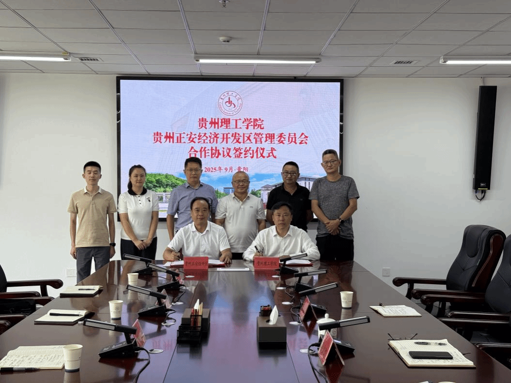 为深入贯彻落实中国共产党贵州理工学院第三次党员代表大会精神,主动对接地方产业发展需求,扎实推进师生进园区、进企业、进项目“三进计划”落地见效,充分发挥学校学科、专业、人才综合优势,聚焦“富矿精开”战略及“六大产业基地”建设部署,加速“政产学研用”一体化融合发展进程。9月29日,贵州理工学院与贵州正安经济开发区管理委员会(以下简称“正安经开区管委会”)战略合作协议签约仪式在学校举行。贵州理工学院副院长李少波,发展规划处、科技处、机械工程学院等相关单位负责人,正安经开区管委会相关负责人共同出席仪式。