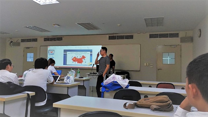 8月21日上午08:00,泰国商会大学安排贵州理工学院游学学生前往泰国易三仓大学(Assumption University)大学进行学习交流。据悉:易三仓大学原名易三仓工商管理学院(ABAC),由圣加俾额尔会(Brothers of St. Gabriel)管理,该修会自1901年以来一直活跃在泰国教育领域。下午14:00,由泰国商会大学DrAaronLoh博士作了以“当今社会如何创业”为主题的讲座。