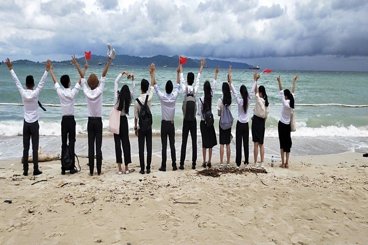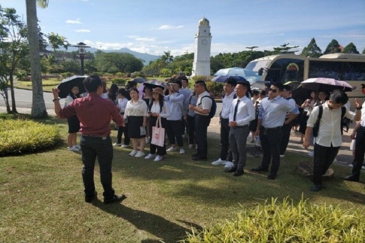 早上8点半酒店楼下准时出发,乘坐校方安排大巴出发去学校,了解到这次的游学之旅除了我们学校的同学外,还有来自毕节学院的小学妹们和来自北京化工学院的同学。这让我感到意外和惊喜,除了可以和当地的人交流外还可以和国内其它高校的同学进行交流;酒店到学校并不远,大概10分钟就到了!沙巴大学的校园和资料上说的一样,真的是美丽,像公园一般占地之广并且是修建在海边,建筑风格别具特色、宏伟壮观。带队的老师带领我们参观了大礼堂、教堂、图书馆以及学校海滩等地方,最让我惊讶的是他们的图书馆,建筑和里面设施也并不奢华但里面专门设有各届国家领导人和获得过诺贝尔获得者等给国家做出突出贡献的学者的名人馆,馆内外的设置那真是奢华,说是艺术的殿堂也不为过!不仅有这些伟人的传记记载他们做出的贡献外,还设置舒适高档的沙发和艺术展品,真是崇尚知识和对知识的敬仰,老师介绍说花巨资修建很是值得,另外还有设置专门摆放学校内同学自己的作品(绘画、建筑模型、设计模型等)供大家观看,让学校的学生以这些伟人为榜样时刻提醒他们努力学习,进图书馆的穿着也必须按校园礼仪,绝不能穿拖鞋进入图书馆。