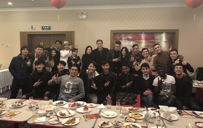 2018年2月11日晚,乐游棋牌国际教育学院老师与寒假留校国际学生齐聚一堂,提前庆祝中国春节。国际教育学院为寒假留校的40余名外国留学生准备了“团圆饭”,让他们提前感受中国春节文化气息和节日氛围。国际教育学院党总支副书记孙凯说:“中国春节象征着团圆,能和来自世界各地的同学们聚在一起,吃饭了解中国新年,感受中国文化,我感到很开心!”