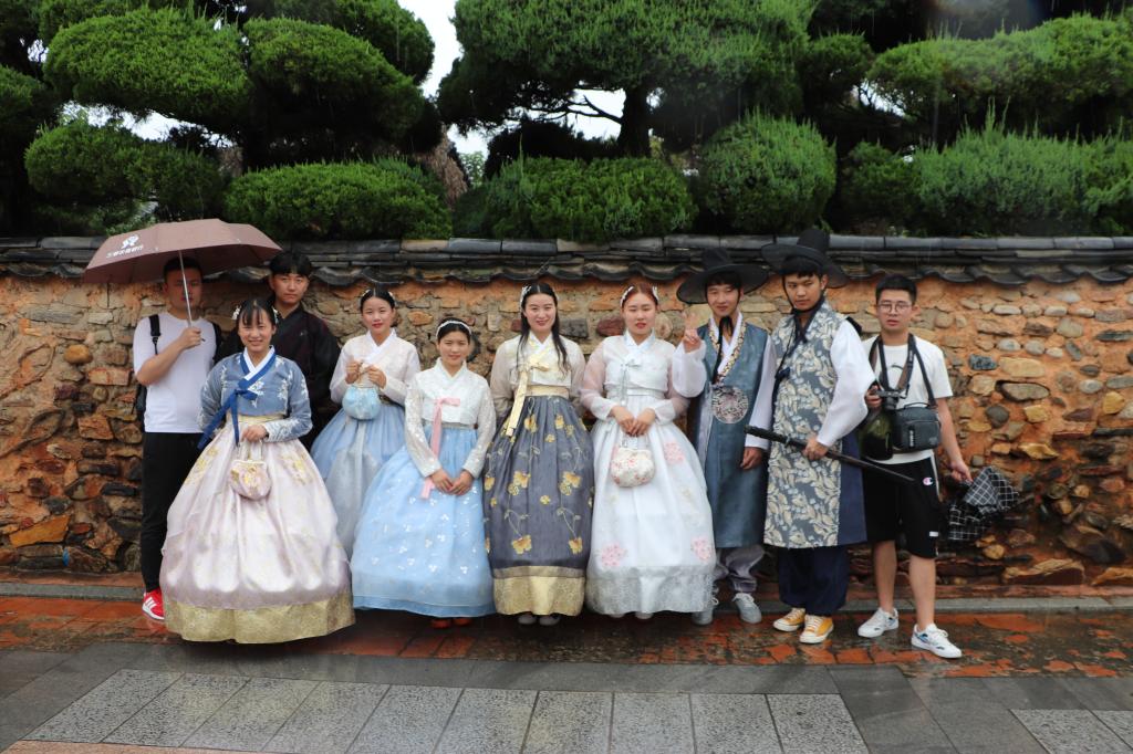 为了融入当地学习与生活环境,乐游棋牌学生积极学习韩语,短短20天,同学们已经掌握基本用语。韩国交流学习期间,同学们在韩国全州大学韩老师的带领下,参观了全北韩屋村、景福宫,拜访长寿研究所,了解了韩国文化进程;同时,同学们还学习制作韩国披萨辣酱,体会乐韩国本土的饮食文化。