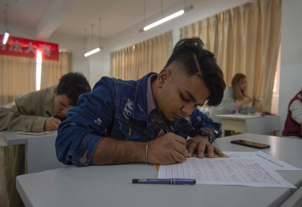 为进一步弘扬中华民族书法文化传统,丰富校园文化底蕴,激发国际学生学习汉字的兴趣,培养国际学生认真书写的良好习惯,提高学生书写水平,展示学院教学成果。乐游棋牌11月23日下午举行了第二届国际学生书法大赛,来自12个国家的69名学生参加了比赛。