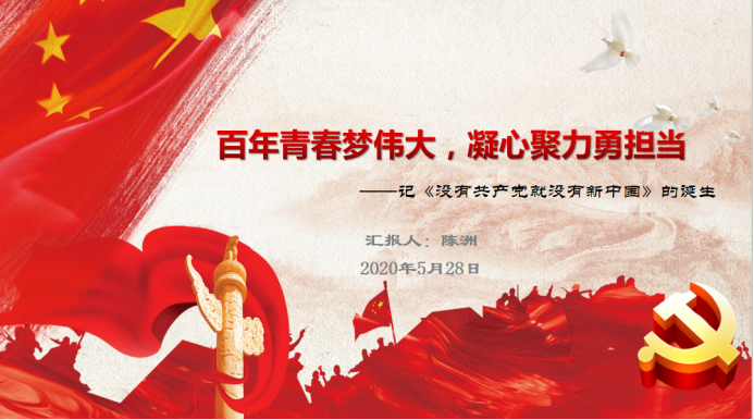 最后,陈洲同志讲《<没有共产党就没有新中国>的诞生》专题党课。党课以爱国歌曲《没有共产党就没有新中国》的创作为引子,讲述了其创作者曹火星的生平、创作的诞生和创作背景,《没有共产党就没有新中国》的传唱,始终伴随着人民军队进军的步伐,伴随着民族解放的前进号角。中国共产党领导中国人民赢得了抗日战争、解放战争的胜利,从此积贫积弱的中国走向繁荣富强。这首歌已经唱了半个多世纪,经久不衰,而且还要被后人继续唱下去。