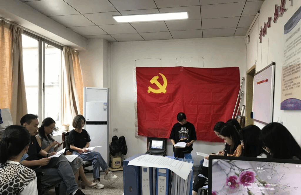 主题党日活动在奏唱国歌中开始。随后,国际教育学院党支部全体党员举行了重温入党誓词的仪式。面对鲜红的党旗,孙凯同志作为领誓人,带领支部全体党员一起高举右手,再次庄严宣誓。“我志愿加入中国共产党……随时准备为党和人民牺牲一切,永不叛党。”