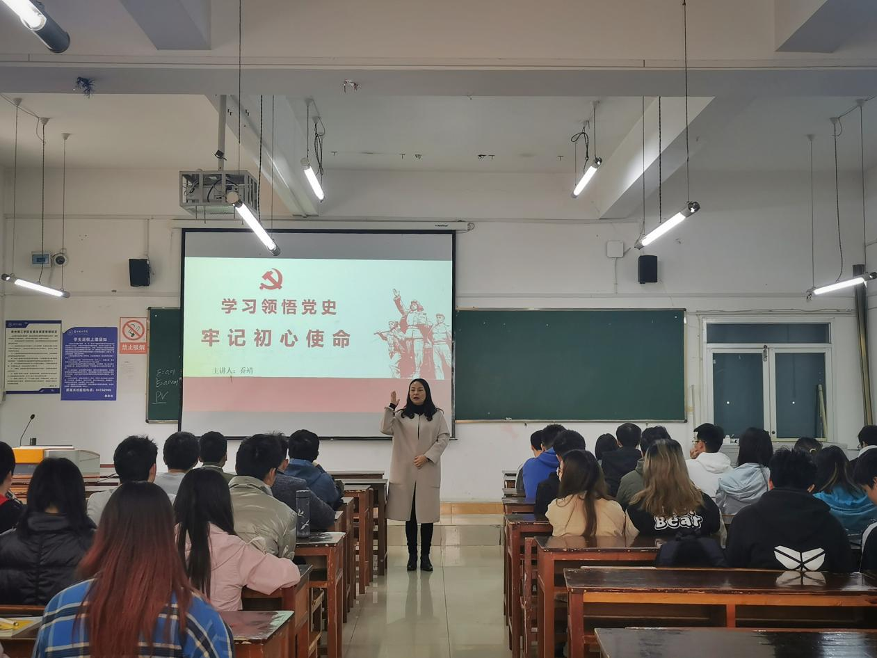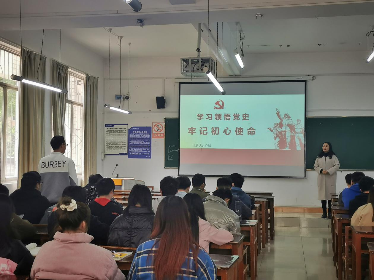 (本网讯 文/图 陈昊怡)2021年4月13日,国际教育学院在3教114教室开展了主题为“学习领悟党史,牢记初心使命”党史专题讲座活动。学院院长乔靖作为2018级班级导师担任此次讲座主讲人,学院2018级中外合作办学班的全体同学们聆听了此次讲座。