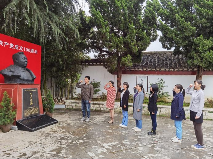 参观结束后,全体党员面对王若飞雕像开展一次重温入党誓词活动。大家纷纷表示“若飞精神”,即“一切要为人民打算”的思想值得我们每一个人认真学习。