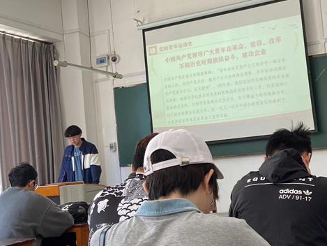 电自合201班团支书刘昊鑫同学为大家讲述了二十大的召开进程、代表选举及其意义,并让同学们了解到党的二十大是我们党进入全面建设社会主义现代化国家、向第二个百年奋斗目标进军新征程的重要时刻召开的一次十分重要的代表大会,并呼吁同学们为实现第二个百年奋斗目标、实现中华民族伟大复兴的中国梦凝聚起强大青春力量。