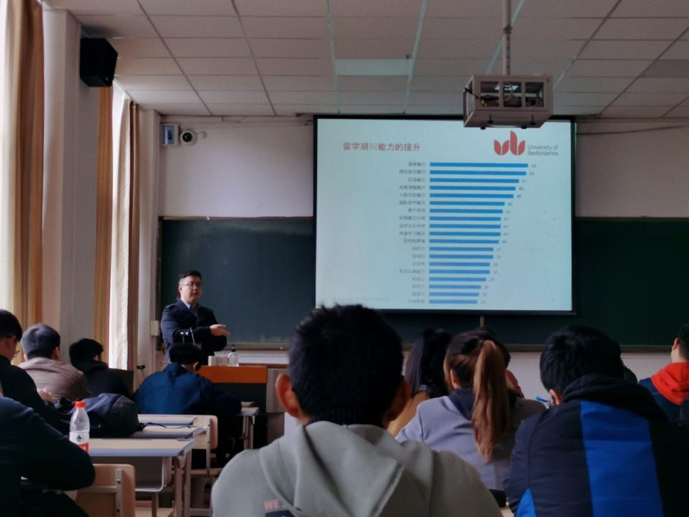 贝大驻中国办公室主任Colin Wang就目前两校合作情况、学生赴贝大读研的条件和申请流程进行了详细讲解。会上,学生们踊跃发言,围绕课程设置、雅思学习、考试成绩、贝大学习和生活环境等方面提出了许多问题和建议。与会老师认真听取和记录了学生提出的问题,并一一给予详细解答。Colin Wang希望以后能和学生们有更多交流的机会,为大家在学习期间出现的问题提供解答和帮助。