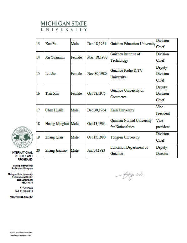 根据中央、国务院出台的因公出国(境)管理工作有关规定,现对贵州理工学院徐元敏同志赴美国执行参加“贵州省高校创新学生管理与服务工作培训团”任务公示如下: