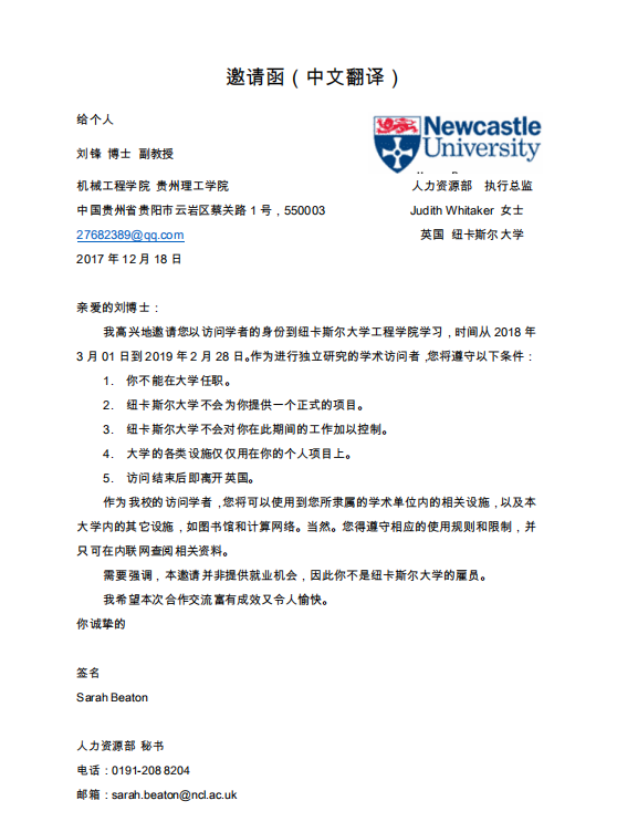 | 2017年西部地区人才培养特别项目-所在单位或个人渠道出国留学人员,录取文号为留金法〔2017〕5086号,学号为201708525057。国家留学基金委资助其赴英国纽卡斯尔大学进行访学,留学期限12个月。