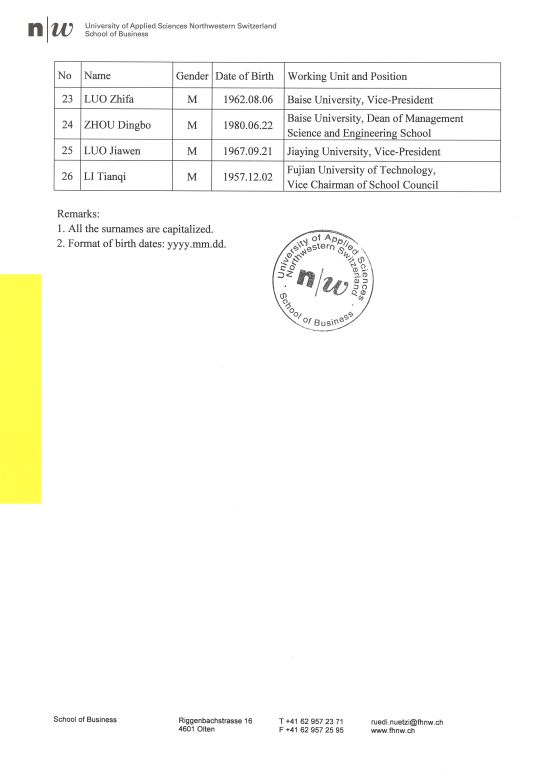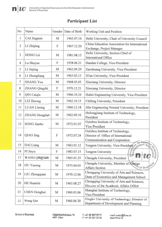 根据中央、国务院出台的因公出国(境)管理工作有关规定,现对贵州理工学院宋建波等2人赴瑞士执行参加“中国应用技术大学展示会”及“中瑞应用技术大学合作研讨会”任务公示如下: