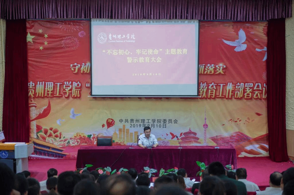 乐游棋牌9月10日,“不忘初心、牢记使命”主题教育警示教育大会在贵州理工学院逸夫小礼堂举行,乐游棋牌曾羽、张波、宋建波、苏向东、胡兴灿出席,全校处科级领导干部、基层党委(党总支)班子成员、党支部班子成员、师生党员代表参加大会。会议由校党委副书记张波主持。