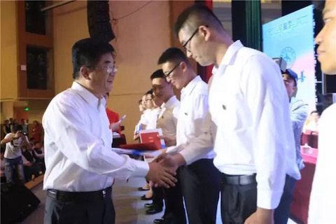 省委常委、宣传部部长慕德贵为获得省级优秀大学毕业生代表颁发证书。