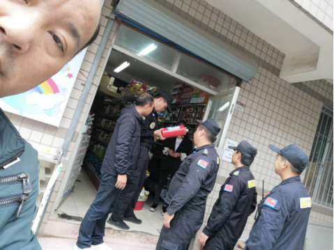 国资处王福禄老师和保安人员对经营户进行安全排查