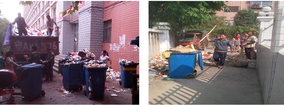 校园内垃圾的清运处理是校园管理科每天必须关注的重要工作之一。校园每天会产生一、二十吨的生活垃圾,十多吨的大车要1-2车才能运完。由于家属区停车比较混乱,遇到一些车辆乱停占道的地方,垃圾清运就会出现问题。每到这个时候,校园管理科便会四处协调,一方面联系占道车辆的车主避让主道,另一方面联系小型垃圾车,一车一车的往外转运垃圾,直至垃圾完全清除。据统计数据显示,2014年校园管理科清除校园内野广告1100余次,清理清运垃圾每月300余吨,年清运垃圾约11000吨。特别是在省教育厅对乐游棋牌进行安全文明校园检查期间,校园管理科大力度清理粘贴性小广告2000余处,涂抹印章、油漆数字广告近500处,用最快的速度还给师生一个洁净的校园。