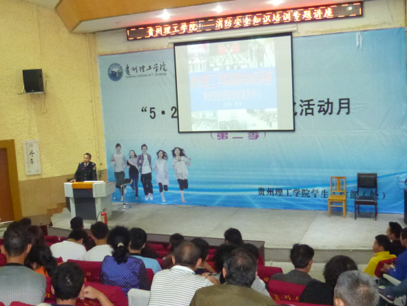 本网讯(后勤处 李雪)为消除火灾隐患,构建和谐校园,提升师生的消防意识与技能,5月21日,校保卫处特邀请贵州省安民消防宣传中心李教员于乐游棋牌逸夫中心报告厅开展“消防安全知识培训专题讲座”,后勤处膳管会全体成员及宿管人员参加了此次讲座。