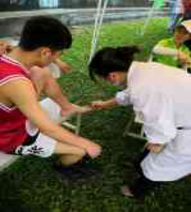 为全力做好校运会医疗卫生保障工作,配备了必需的急救药品及器械,为运动员、裁判员提供及时、有效的现场救护和医疗保障服务。在运动场上,身着白衣的她们随时关注着赛场上运动员的身体状态,询问病情,监测生命体征,为受伤者清创、消毒,为肌肉痉挛者按摩放松,为晕厥学生放松心情,为出现各种不适的患者检查身体,在运动会期间天气炎热,易发生中暑等身体不适情况,校医们提醒运动员注意人身安全的同时,在场观众也要预防因高温带来身体不适的状况。用精湛的医术缓解运动员的伤痛,以热情的服务温暖运动员的心,卫生所医务人员发挥自己专业特长,也保障了比赛的顺利进行。