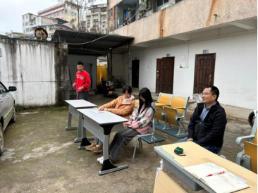 (课桌椅选样现场)