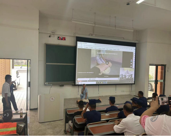 (本网讯/后勤管理处熊宇/文)为进一步提升校园物管工作人员及安保人员的急救水平,提高应急处置和应变能力,7月18日下午,物业及保安全体人员开展成人心肺复苏技能操作及中暑急救知识培训。