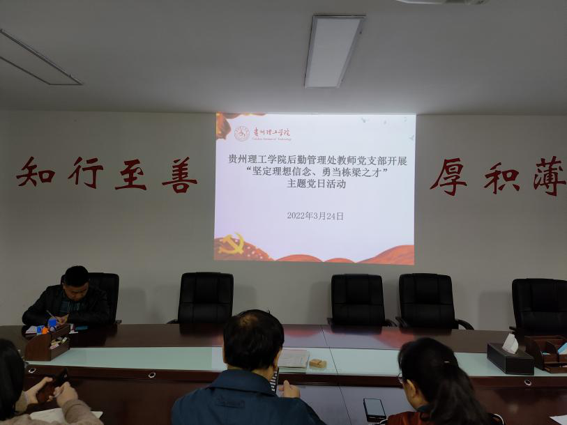 (本网讯 王玲文/图)2022年3月24日上午9:00,后勤管理处教师党支部在后勤楼301会议开展了“坚定理想信念、勇当栋梁之才”主题党日活动。