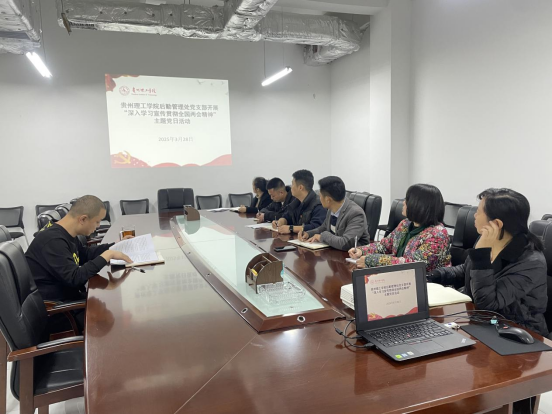 本网讯(后勤管理处 邵茜/文)2025年3月28日下午,后勤管理处党支部在笃行楼212会议室开展了“深入学习宣传贯彻全国两会精神”主题党日活动。