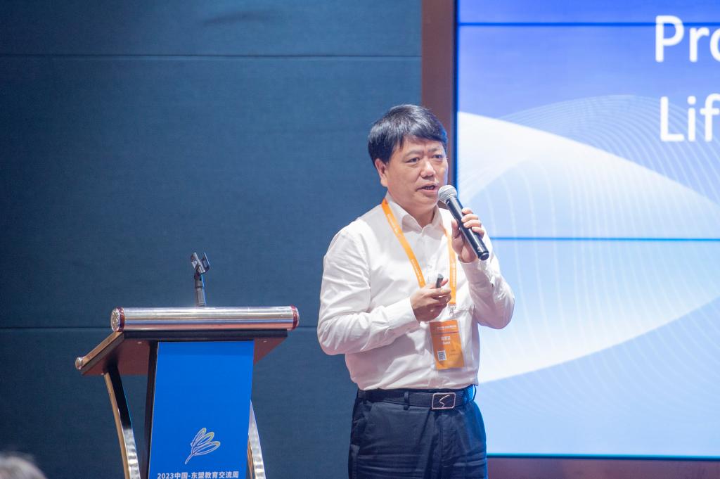 北京工商大学校长郭建华在致辞中表示,中国和东盟国家陆海相连,比邻而居,彼此人文相通、血脉相亲,结下绵延不绝的深厚情谊。北京工商大学正在积极推进与东盟各国的深度交流与合作,通过联合共建中柬商学院、师生交流互访等形式持续巩固与东盟各国的交流,推动与东盟国家在教育领域的高质量可持续的发展。本次论坛我们将以“数字化转型下的教育创新”这一主题与国内外高校、智库和企业界代表进行深入探讨和交流。围绕数智赋能与教育变革、数字变革时代高等教育的人才培养、数字化发展对人才培养的新要求、商科数字化转型等内容,从不同角度、不同层面、不同领域探讨教育数字化转型的最新进展、最佳实践和最有效策略,进而为教育数字化发展提供有益的借鉴与启示,为构建包容公平高质量可持续发展的智慧教育体系作出贡献。