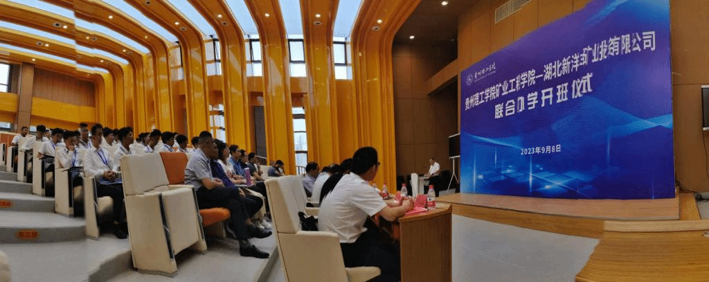 本网讯 (矿业工程学院)2023年9月8日,贵州理工学院矿业工程学院—湖北新洋丰矿业投资有限公司联合办学开班仪式在贵州理工学院举行。贵州省能源局、国家矿山安全监察局贵州局、纳雍县能源局、贵州理工学院、湖北新洋丰矿业投资有限公司、中铁隧道局集团有限公司有关负责同志出席开班仪式。