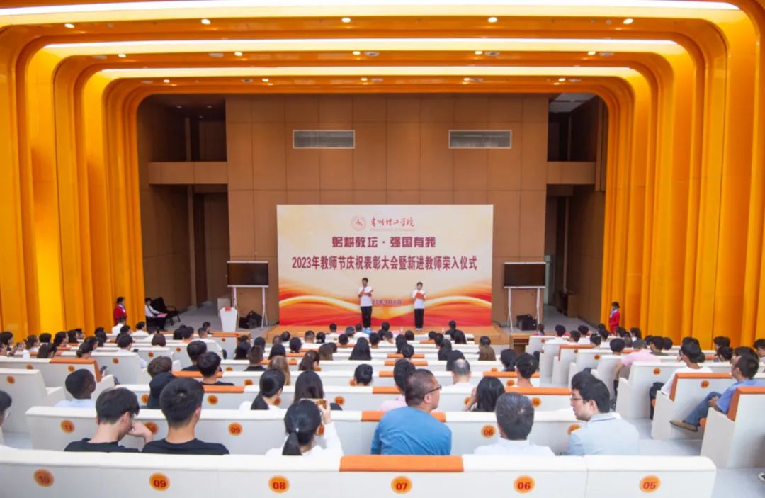 校党委书记苏向东代表学校党委,向全校教师致以诚挚的节日问候和美好祝愿,向受到表彰的教师先进个人表示热烈的祝贺、向今年光荣加入学校教师队伍的新教师表示热烈的欢迎!他说,“岁序更替,华章日新,十年荏苒,筚路蓝缕。搬迁新校区,建功新时代,学校迎来了建设发展的崭新起点。”勉励全体教师要忠诚党的教育事业,奋力书写“躬耕教坛”的时代新篇;要涵养高尚师德情怀,努力成长为学生爱戴的“大先生”;要强化业务能力提升,以实际行动诠释“强国有我”的铿锵誓言。希望教师们更加坚定理想信念、陶冶道德情操、涵养扎实学识、勤修仁爱之心,切实树立“躬耕教坛、强国有我”的志向和抱负,弘扬“时不我待、只争朝夕、艰苦创业”的理工精神,努力在教学和科研中找准自己的特长与发展路径。坚持问题导向与目标导向,围绕“四新”主攻“四化”,为“六大产业基地”建设做好服务,自觉融入教育强国洪流,将论文书写在更加广袤的多彩贵州与祖国大地上。