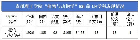 据科睿唯安(Clarivate)2025年3月发布的最新一期《基本科学指标数据库》(Essential Science Indicators,简称ESI)统计数据显示,贵州理工学院“植物与动物学”(Plant & Animal Science)学科首次进入ESI全球排名前1%,成为贵州该学科进入ESI前1%的第三家本科高校,标志着贵州理工学院植物与动物学学科进入国际高水平学科行列,取得了历史性突破。