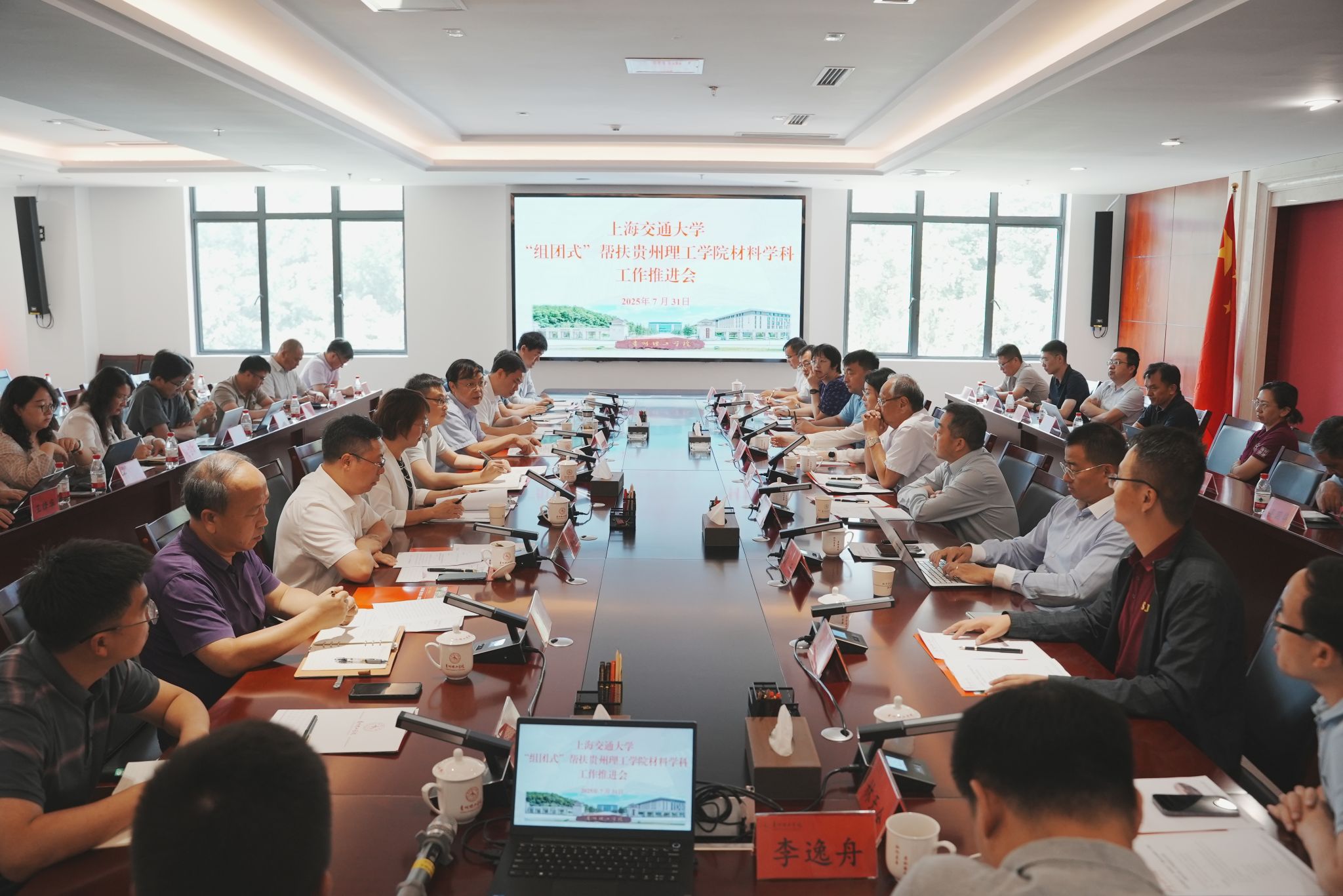 沪黔携手,教联山海。7月31日,上海交通大学帮扶贵州理工学院材料学科工作推进会在贵州理工学院知行楼 605会议室召开,旨在深化沪黔教育合作,推动帮扶工作落地见效。中国工程院院士、轻合金精密成型国家工程研究中心主任丁文江,上海交通大学党委常委、副校长曾小勤,贵州省科学技术厅党组成员、副厅长安守海,贵州省委教育工委委员、省教育工会主席江山,上海交通大学贵州校友会秘书长李炳炀、副秘书长张雄、花溪大学城党工委委员、管委会副主任陆秀峰,贵州理工学院党委书记肖建宗出席会议。两校相关代表及上海交通大学贵州校友会相关专家参加会议。