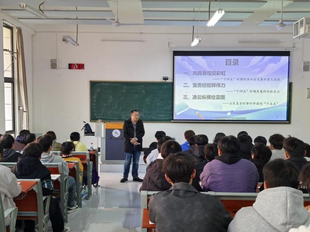11月18日,校党委副书记任洲麒以“正确认识中国经济热点问题”为题,为工管232班、造价232班同学们专题授课。他从“应对外部冲击的能力底气何来”、“为何要促进民营经济发展壮大”“做强国内大循环”三方进行讲解,引导青年学生正确认识中国经济发展现状,增强对国家经济发展的信心与底气。他鼓励同学们以此次课程为起点,养成关注经济形势的习惯,学会用辩证思维分析经济热点,将专业学习与国家发展需求紧密结合,在学习中锤炼本领,在实践中增长才干,努力成为适应高质量发展需要的高素质人才,在中国式现代化建设的浪潮中书写青春华章。