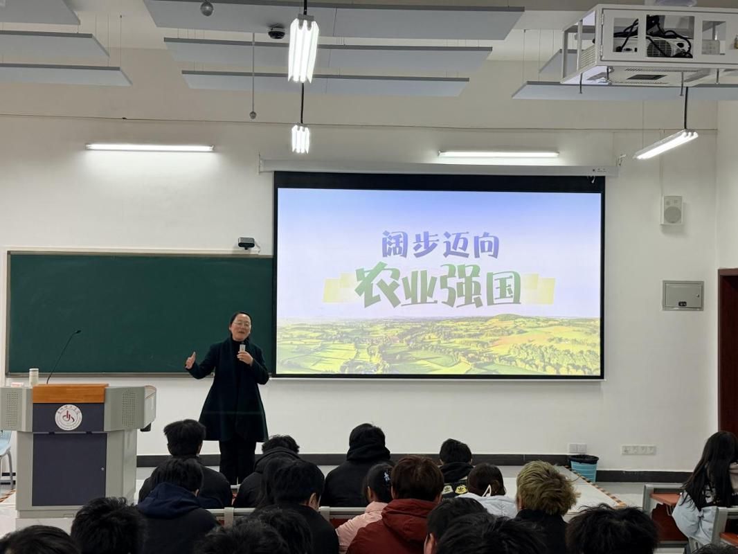 12月15日,副院长李少波以“阔步迈向农业强国”为题,为材料231、232班学子专题授课。他以2024年国家经济与“三农”发展亮眼数据为切入点,阐释了农业强国对民生保障、高质量发展和国家安全的重要意义。围绕“建设什么样的农业强国”,详细解读了农业强国“供给保障强、科技装备强、经营体系强、产业韧性强、竞争能力强”的共同特征,强调我国农业强国建设必须立足“大国小农”基本国情,坚持中国特色社会主义制度优势,走因地制宜、多元发展与“四化”同步协调推进的特色道路。他指出,材料科学在种业振兴、农机升级、农产品保鲜等农业强国建设关键领域作用突出。他寄语学子厚植爱农情怀,将个人理想融入国家战略;练就兴农本领,深耕农业领域材料应用难题;勇于创新实践,把课堂所学转化为服务农业现代化的实际能力。
