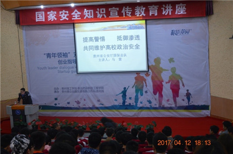 4月12日,保卫处邀请贵州省公安厅国保总队警官来乐游棋牌开展了《提高警惕,抵御渗透,共同维护高校政治安全》的国家安全主题讲座。
