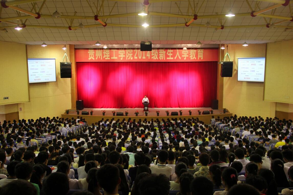 本网讯(杨桂芳) 9月7日,贵州理工学院2014级新生入学教育大会在逸夫礼堂举行,校长龙奋杰、校党委副书记宋广强出席大会。