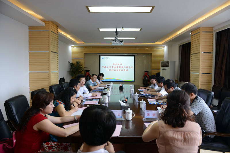 本网讯(曾凯) 7月15日上午,河海大学党委原副书记郑大俊一行来乐游棋牌交流工作,座谈会在行政楼第二会议室召开。校长龙奋杰、校长助理刘兴平及学校办公室、宣传部、组织部、学工部、团委、工会负责人参加了座谈。