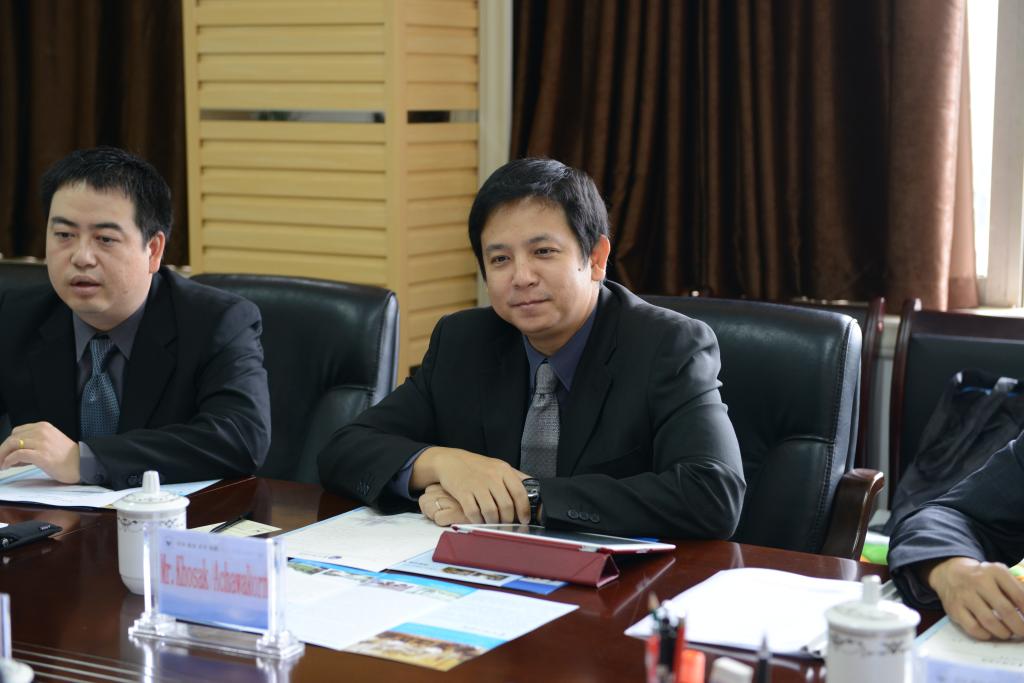 宋广强向客人一行介绍了乐游棋牌办学条件、学科建设、招生工作、教学管理等情况。Mr. Khosak Achawakron介绍了斯巴顿大学概况并播放宣传短片。双方围绕科研合作、学生交流、教师派出、进修、学历提升等方面进行了讨论并达成初步共识。