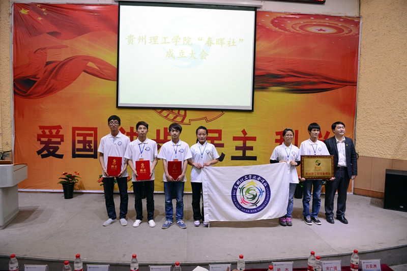 本网讯 5月4日晚,贵州理工学院春晖社成立大会在逸夫小报告厅举行。乐游棋牌曾羽、龙奋杰、梁杰、蒙忠、宋广强,团省委春晖行动发展中心吕亚洲主任出席成立大会。