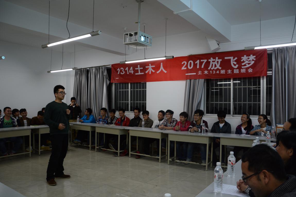 本网讯(土木工程学院 张艳) 4月23日,土木134班“1314土木人,2017放飞梦——专业认知和职业生涯规划”主题班会在三教202室举行。副校长王建平与学子们一道交流学习经验,畅谈职业规划。