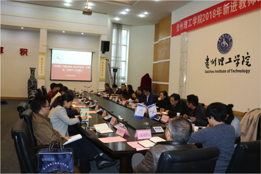 本网讯(教务处 周新国)10月30日上午,贵州理工学院2018-2019学年第一学期第二次教学工作例会在喀斯特会议厅召开,副院长梁杰、院长助理李滚出席会议。