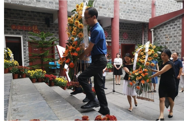 活动开始,全体人员在周逸群烈士塑像前向烈士鞠躬致敬并敬献花篮。