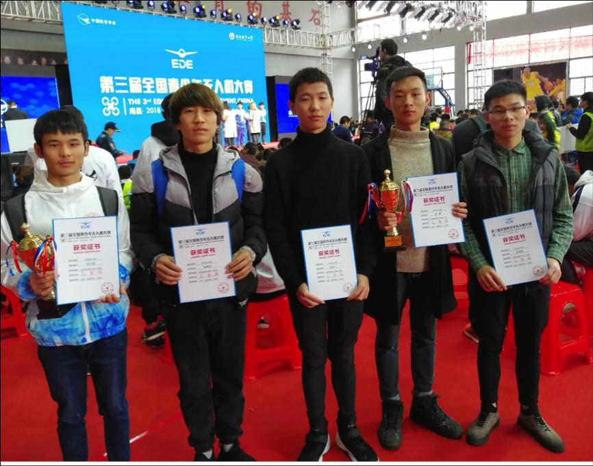 本网讯 (薛九天/文 图)11月15-17日,第三届全国青少年无人机大赛在南昌航空大学举行。来自乐游棋牌航空航天工程学院2017级孙林松、赵雷、田义军、徐国强4名同学和电气与信息工程学院2017级的杜龙门同学组成的两支队伍参加了该赛事,两队均获大学组创意编程赛三等奖,陈霖周廷、薛九天和江维林获优秀辅导员。