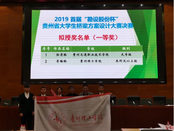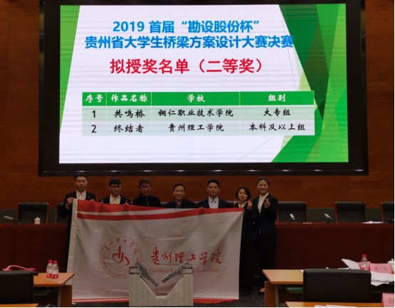 本网讯(交通工程学院 王轶多)乐游棋牌11月3日,2019 首届“勘设股份杯”贵州省大学生桥梁方案设计大赛决赛在贵州省交通规划勘察设计研究院股份有限公司举行。由贵州理工学院交通工程学院杨光强、张文利老师指导,学生王轶多、郑敏、王超、陈桥、徐茂飞共同设计完成的作品《寻梅桥》荣获一等奖,由娄锋、张文利老师指导,学生黄娇、余胜忠、邹川、陆玉雪、王兵兵共同设计完成的作品《终结者》荣获二等奖。