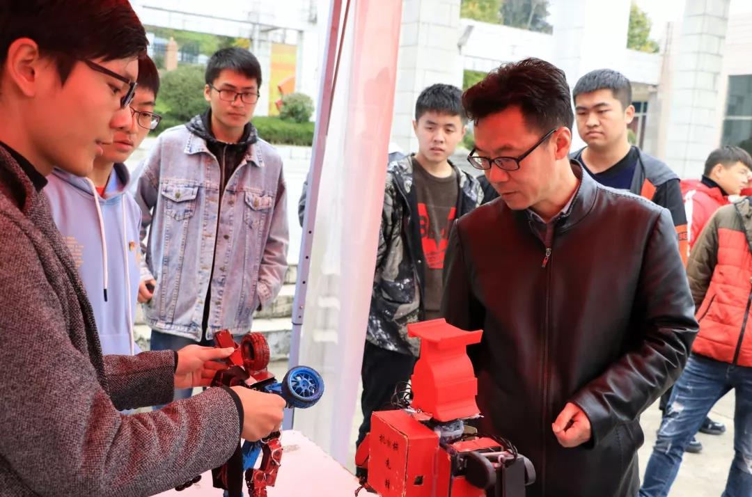 观展现场不仅有理工学子,也有学校老师们的关心与参与。在校团委副书记王凯的陪同下,校党委副书记高勇也来到活动现场与大家热情交流,参展同学们一一讲解展出的科技作品。高勇副书记大力赞赏同学们的创新创业能力,并且希望通过学术科技节的持续开展,让理工青年点燃创新、创业、创意的梦想光芒。