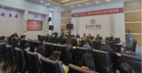 2021年11月3日,贵州理工学院党外人士座谈会暨建言献策培训会在蔡家关校区喀斯特会议厅召开,校党委副书记、校长苏向东,党委副书记高勇,贵州省政协委员、省政协提案委员会副主任梁杰,学校党委委员李朋出席会议,学校各民主党派成员、留联会、知联会代表参加会议。